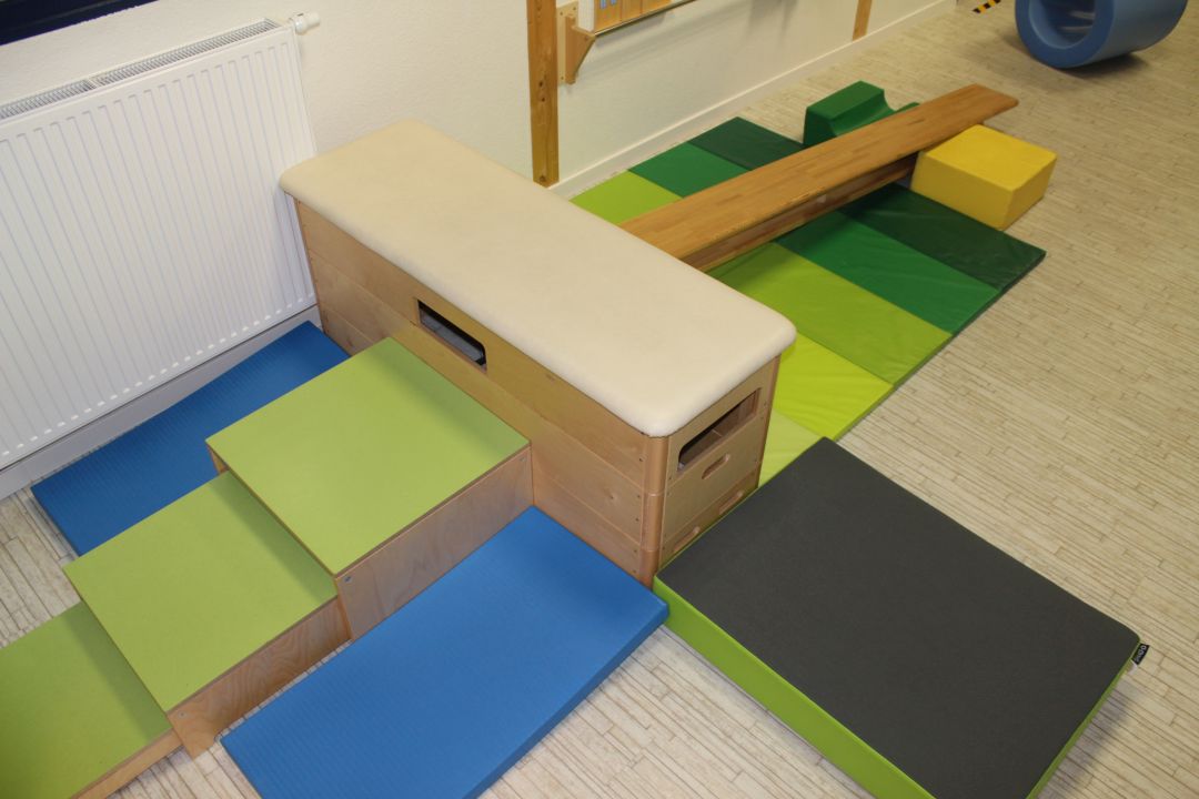 - Parcoure in der Spielstraße zum rutschen, klettern und balancieren aufbauen